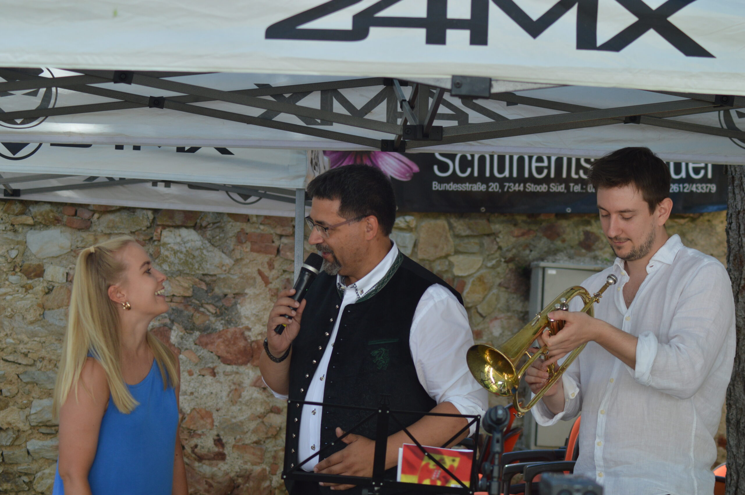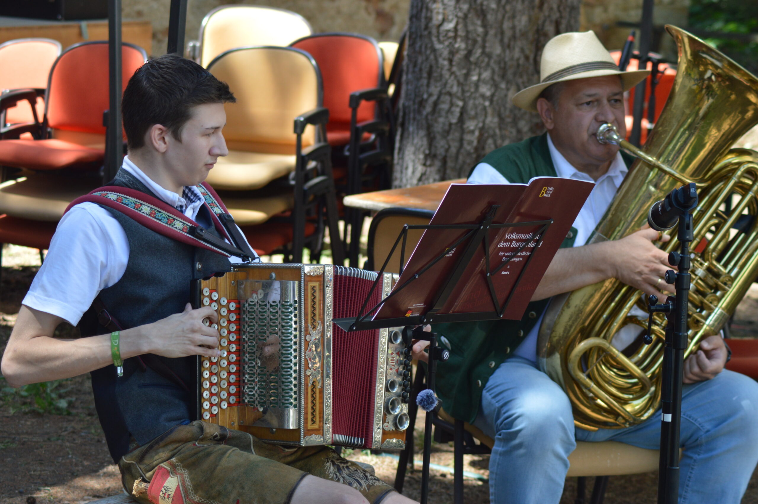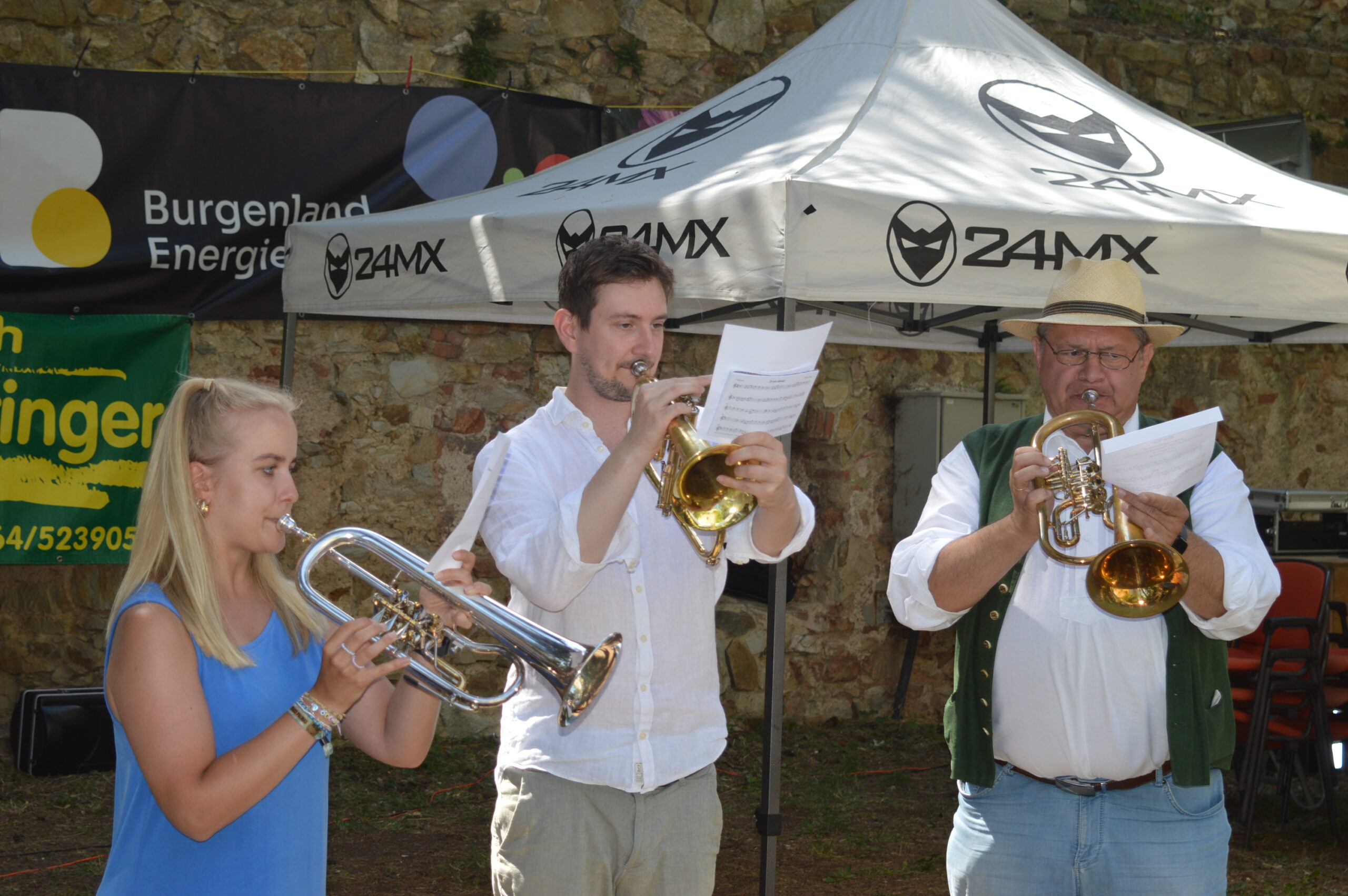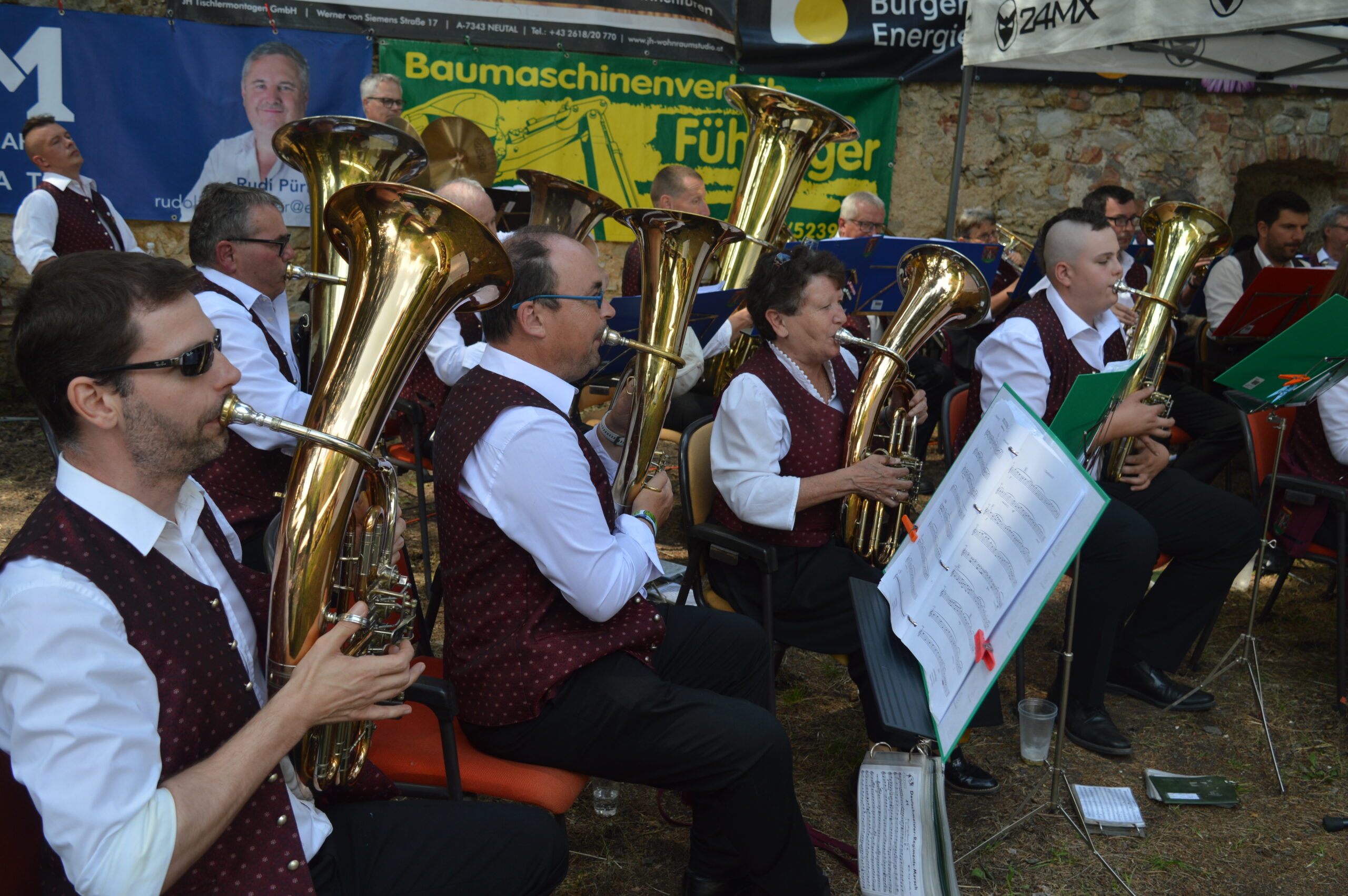 Bereits am Vormittag füllte sich der Burghof mit Musiker:innen und Besucher:innen. Das Programm wurde mit einer Heiligen Messe eröffnet, begleitet von musikalischen Beiträgen. Im Anschluss gestaltete der Musikverein Dörfl einen Frühschoppen: Neben beschwingten Klängen gab es auch kulinarische Köstlichkeiten, zubereitet vom Verein zur Erhaltung der Burgruine.