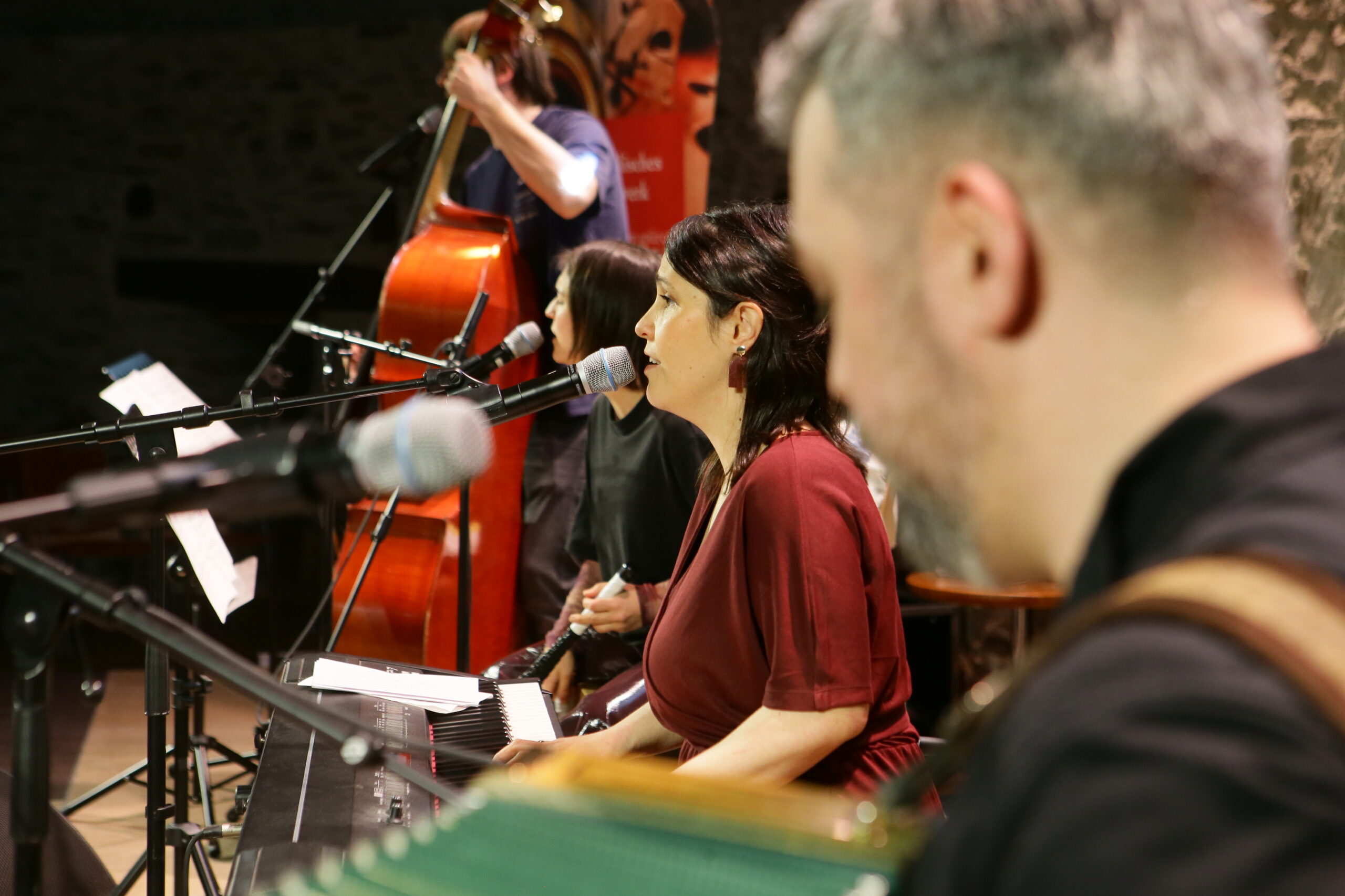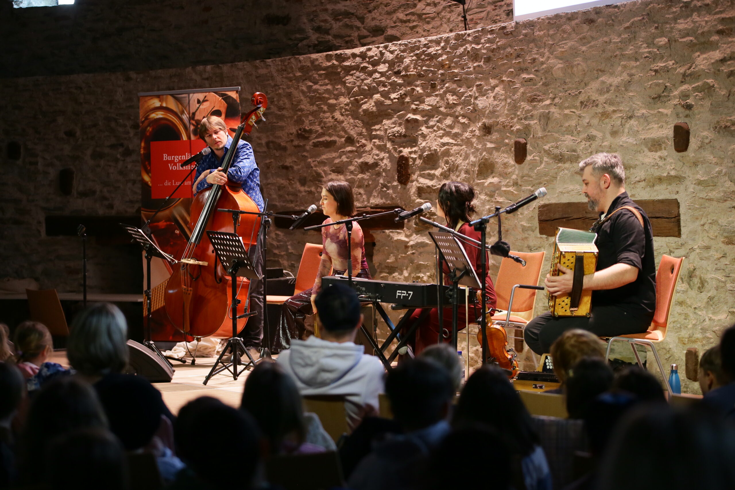 Den krönenden Abschluss bildete das Mitmachkonzert im Granarium, dem Konzertsaal der Friedensburg. Die burgenländische Band IDEMO bewies auf eindrucksvolle Weise, wie traditionelle Lieder in einem modernen Klang erstrahlen können, verpackt in einer „Traum-Erzählung“. Dabei wurden auch in einer von IDEMO neu bearbeiteten Version des Liedes „Do bin i dahoam“ (komponiert von Reinhold Bieber) die vier burgenländischen Landessprachen thematisiert. Der beeindruckende Gesamtklang aller fröhlichen Kinderstimmen schuf eine Atmosphäre voller Freude, Gemeinschaft und musikalischer Faszination und bewies erneut, wie kraftvoll Musik verbindet und Kinder inspiriert!