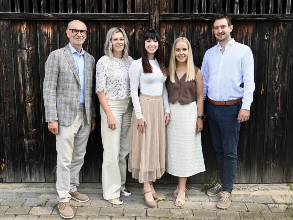 V.l.n.r. Dr. Sepp Gmasz (Obmann), Kerstin Hoppel (Büroadministratorin), Anna-Maria Hammer, BA BA (Geschäftsleiterin), Elisa Heuchler, BA BA (Assistenz der Geschäftsleitung), Benjamin Redlbacher, BA BA (Geschäftsleiterin Stellvertreter)
