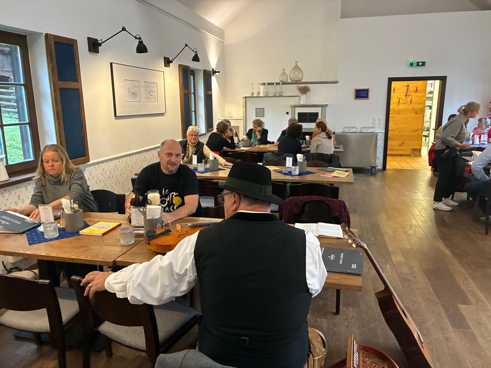Am Freitag, den 26.09.2025, fand wieder ein Wirtshaussingen im „Dazumal“ Arkadenheurigen in Bad Tatzmannsdorf statt. Dagmar und Werner Schönfeldinger leiteten die Veranstaltung und verbrachten mit den anwesenden Gästen einen gemütlichen musikalischen Nachmittag. Das Burgenländische Volksliedwerk präsentierte ein breites Shop-Angebot, darunter unter anderem die Burgenländischen Wirtshausliederbücher, weihnachtliche Artikel und Liederbücher für Kinder. Wir bedanken uns sehr herzlich bei unseren Referent:innen für die hervorragende Gestaltung, beim Organisationsteam des Arkadenheurigen, sowie bei allen Musiker:innen, Sänger:innen und Zuhörer:innen fürs Dabeisein.